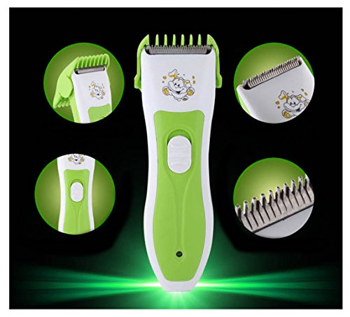 Feature : Type: Hair Trimmer, age groups: babies, type format characters, power source: rechargeable battery, a battery that is not, Age: 0-3 months, 4-6 months, 7-9. months, 10-12 months, 13-18 months, 19-24 months, 2 years or more, Material: Stainless steel Plastic, Size: 17cm, power: 3 (W), Colour: Green ivory white.