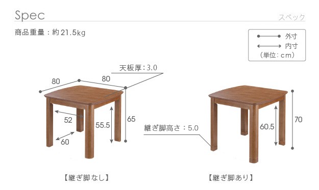 サイズ(cm):幅80x奥行80x高さ70(65)・約21.5kg