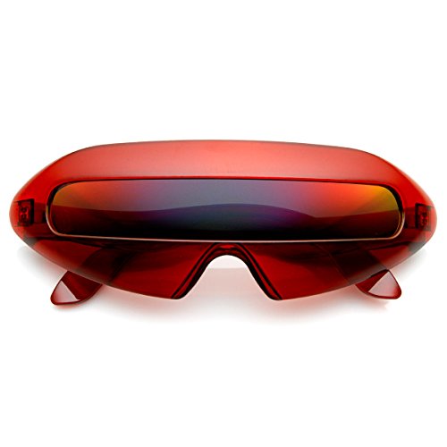 Futuristic frame design sunglasses that are sure to draw the attention of any crowd. Available in a variety of colors that are perfect for anyone making a statement at the party! Made with an acetate based frame, metal hinges and polycarbonate UV protected shield lens. Lens Height:20mm Lens Width:125mm Bridge:20mm Frame Total:150mm