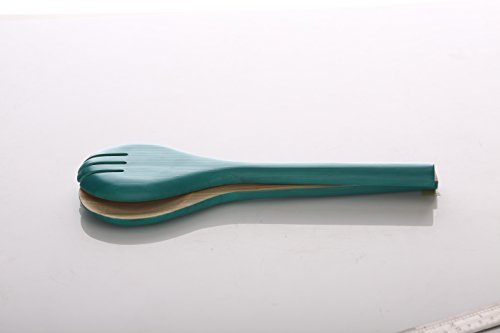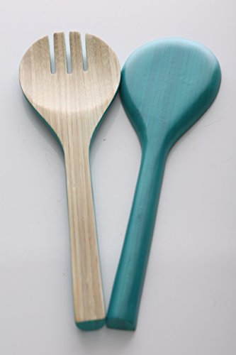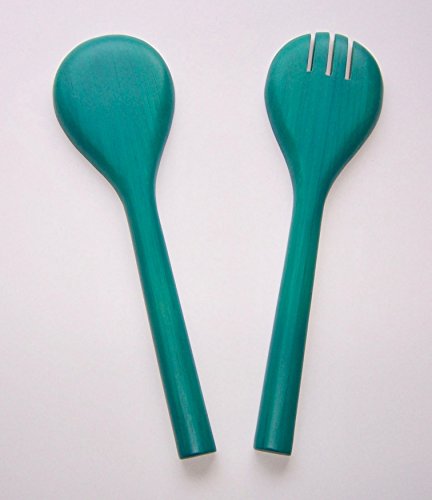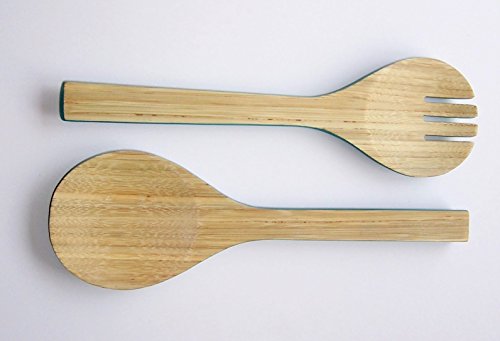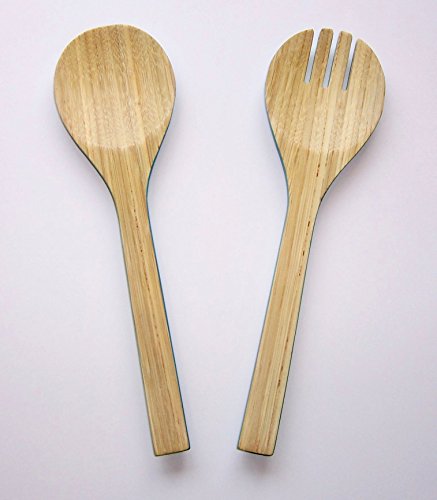 Set of Large Bamboo Salad Servers - Handcrafted Eco-Friendly 12” Wooden Salad Tossers / Salad Tongs / Bamboo Salad Hands Feature Natural Spun Bamboo on One Side and a Turquoise Finish on the Other.