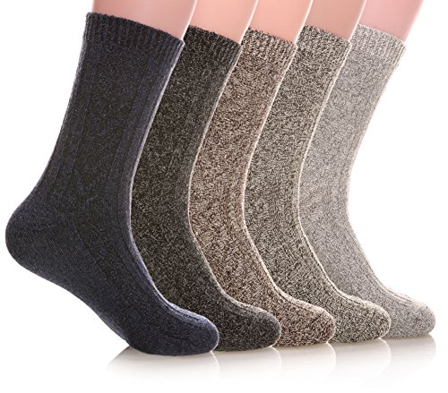-. Binding : Apparel -. Brand : NOVCO -. Department : mens -. Feature : HIGH QUALITY : The Socks is blend of High Quality Materials Wool 38% , Cotton 32%, Polyester 25% , Spandex 5% . they are Heavy, soft, comfortable, breathable, warm and durable men socks. / FUNCTIONAL: Moisture wicking, keep your feet from getting sweaty. No itchy, non-binding. This sock knit is very accommodating. The cuff stays up, doesn't slide around, and doesn't squeeze your ankle. / SIZE & CARE : These Men socks come is a standard US SIZE that fit US mens shoe sizes from US 6 - 12, so everyone can enjoy these socks, fashion warm work socks. Please do not iron them and sesting wash them by hand, Great quality socks require the proper care! / THICKNESS: They are thick but not overly so, and just the right thickness for comfort and warmth with boots, loafers or sneakers. If you're just looking for nice, cushiony, medium-warm socks for the fall or winter to go inside your boots, these are great / HIGH PERFORMANCE : Great cold weather gear for outdoor activities and sports like Skiing, Hiking, Camping, Mountain Biking, Trail Running, Backpacking, Travel, Trekking and Other Athletic Outdoor Activities and Wide Variety of Winter Sports. -. IsAdultProduct : 0 -. ProductGroup : Apparel -. ProductTypeName : SOCKSHOSIERY -. Size : One Size -. Title : 5 Pairs Mens Wool Soft Comfort Thick Cotton Warm Winter Crew Socks