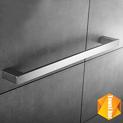 Bath Single Towel Bar Rack Contemporary Square Hotel Towel Bar Hanger Shower Hand Towel Holder Modern Heavy Duty Kitchen Shelf Hanging Rod Storage Stainless Steel Polished Chrome Wall Mount by KOOLIFT