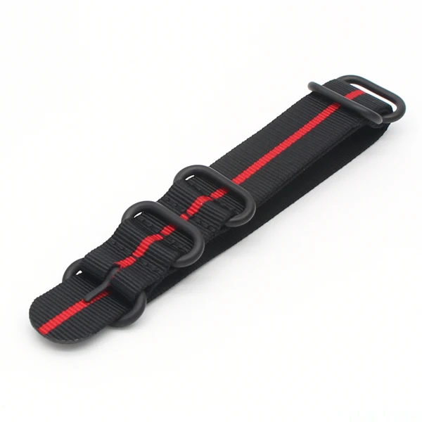 나일론 시계 밴드 다섯 버클 나토 나일론 시계 스트랩 무거운 의무 스트랩 18/20/22/24 미리메터 시계 스트랩 링 버클 블랙-레드-블랙