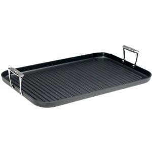 8700800170 Features: -Extra-large pan for stovetop grilling.-Nonstick, utensil-safe anodized stainless steel interior.-Riveted, stay-cool stainless steel handles. Construction: -Durable 3-Ply construction for even heating. Color/Finish: -Sleek black anodized finish. Dimensions: -20'' W x 13'' D, 7 lbs. Collection: -Specialty Cookware collection. Warranty: -Grande grille pan, use and care manual, and warranty information.Feature