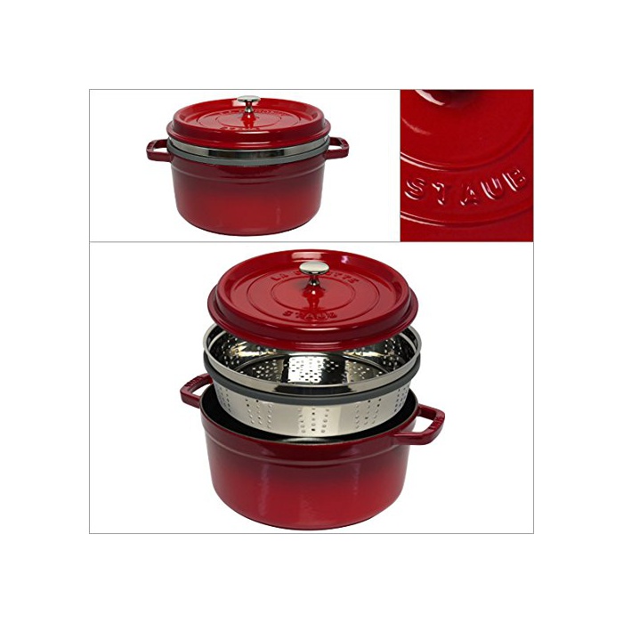 Staub [스트《우부》] staub 피코 여기《도》 라운드 26cm 레드 스티머(Steamer) 세트 [병행수입품] [홈&키친]