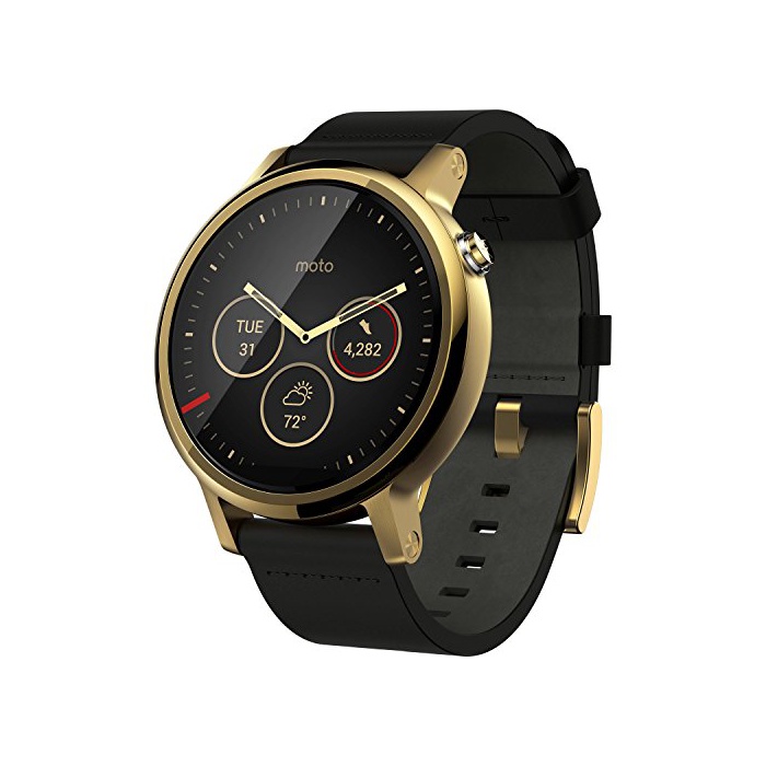 MOTOROLA 【제2세대】Moto 360 2nd Gen 2015 Smart Watch 스마트 워치 손목시계 Android Wear iOS대응 (남성용 46mm 골드 블랙 레더 밴드)
