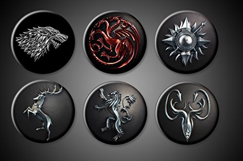-. Feature : Game of Thrones Magnets Set of 6 1" round / Famous House Symbols Sigils / Stark, Lanister / Targaryen Martell / Baratheon, Grayjoy