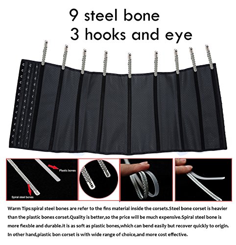 Internal 9 steel flexible bones prevents garment roll-up , which is flexible and durable that can provide excellent back support and keep you in best posture. It is easily to let you recover quickly to origin; Takes inches off your waist and creates an hourglass figure and promotes a quick post pregnancy recovery.