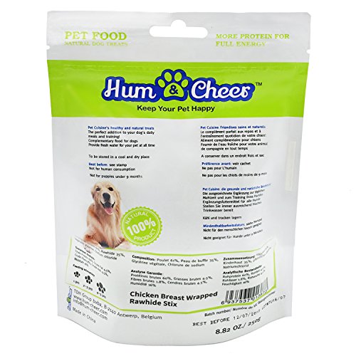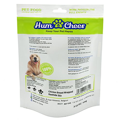 -. Title : Hum & Cheer Premium Dog Treats Chews Chicken Breast Wrapped Rawhide Stix For Training