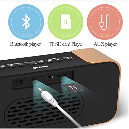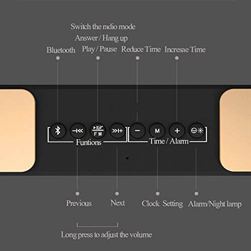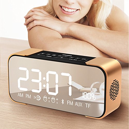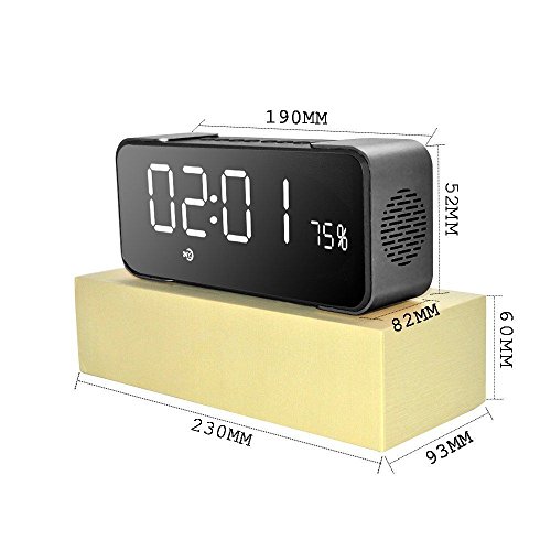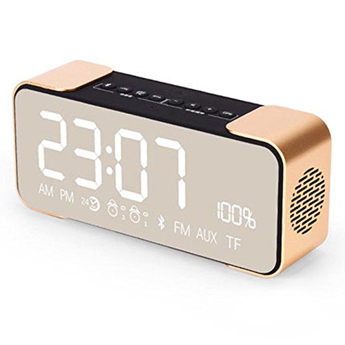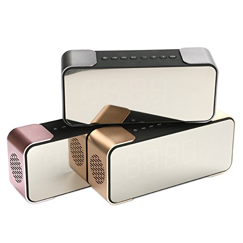 -. Feature : We use Bluetooth 4.2 technology, display high and good quality music. Built-in automatic channel searching FM radio, Support plug & play of music files from TF memory cards. Also support playing music from AUX cable input, Effective distance up to 10m / Longer player time: Built-in 2200mAh rechargeable battery offers up to 8 hours of entertainment. Dual Alarm Clock Radio: Dual alarms to wake to different sources at different times / Wireless portable bluetooth speaker: Using LED LCD mirror design and good sound quality, It can display the time and other data, Used as a mirror. Mirror through multi-channel process burnish, clear and bright, reflection objects in anytime. This LED Display will Automatically shut down when the battery is less than 15% / Enjoy a High Definition stereo sound with a impressive volume whether You're lounging around the House / Partying / Walking out / Camping / Hiking / Biking. Easy to use and you will like this speaker. Our products support 12 months worry-free warranty and friendly customer service / Best Ideal Gift It is an ideal gift for any occasion, Perfect for students in dorms, partygoers at celebrations, families at special events, and children for relaxing. Especially ideal as holiday GIFT, birthday present, housewarming gift or simply as a personal treat
