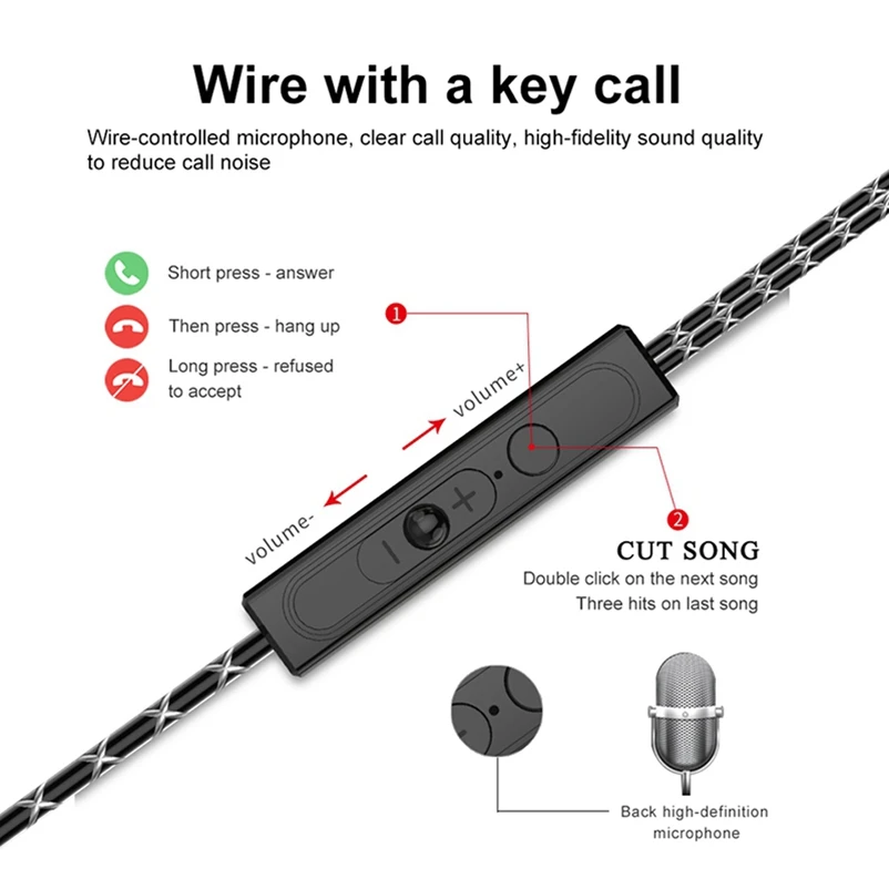 Function 3: Stereo Earphone with microphone Bass earbuds