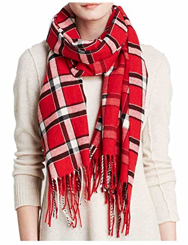 A Marc by Marc Jacobs scarf in a vibrant plaid weave. Frayed edges and fringed ends.