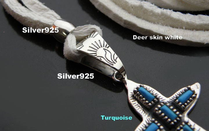 ターコイズを使ったクロスデザインのシルバーTOPと柔らかく軽い鹿の革を使った、ホワイトレザーチョーカー☆シルバービーズやカラフルなガラスビーズを使ってバックスタイルもカンペキに決めてくれる細部にまでこだわった仕上がりになっています!洋服によって長さも変えれる造りになっています。レザーのホワイトとターコイズの鮮やかなブルーがかなりマッチしちゃってます!!夏スタイルには欠かせないアイテム!!!当店オリジナル限定販売です☆