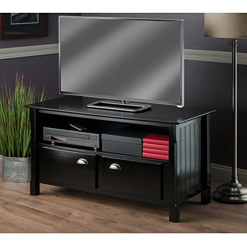 -. Binding : Kitchen -. Brand : Winsome Wood -. Color : Black -. Department : Barstools -. EAN : 0012333014333 -. Feature : Stylish TV stand with open component shelf and 2-door cabinet / Made of solid and composite woods with Matte Black finish and brushed-steel hardware / Design details include beveled top, beadboard-style sides, and carved legs / Ready to assemble with included tools / Measures 45 inches long by 20 inches deep by 24 inches high -. IsAutographed : 0 -. Label : Winsome Wood -. Manufacturer : Winsome Wood -. Model : 20244 -. MPN : 20244 -. NumberOfItems : 1 -. PackageQuantity : 1 -. PartNumber : 20244 -. ProductGroup : Furniture -. ProductTypeName : HOME_FURNITURE_AND_DECOR -. ProductTypeSubcategory : 19605001 -. Publisher : Winsome Wood -. Size : FURNITURE -. SKU : 10542 -. Studio : Winsome Wood -. Title : Winsome Wood Timber TV Stand -. UPC : 012333014333 -. Warranty : 60 days from purchase for parts.