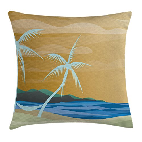 (Ambesonne)/Bedding Bath/Bedding/DIRECT FROM USA/Beach Throw Pillow Cushion Cover by Ambesonne, Illustration of Hammock in the Tropical Sandy Be...