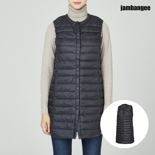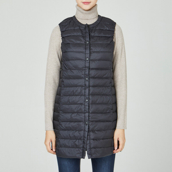 여) 롱한 기장감으로 힙까지 따뜻하게 착용할 수 있는 여성용 롱기장 베스트입니다.
