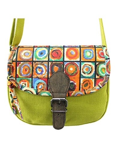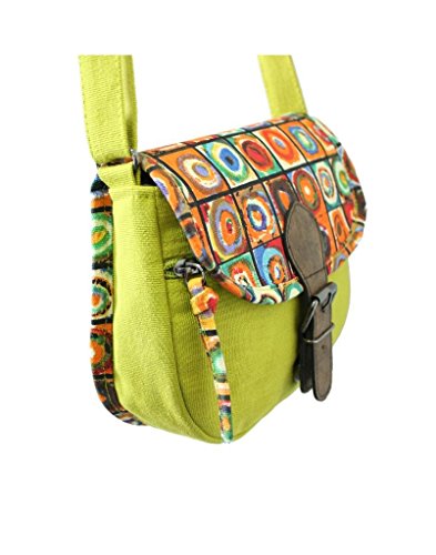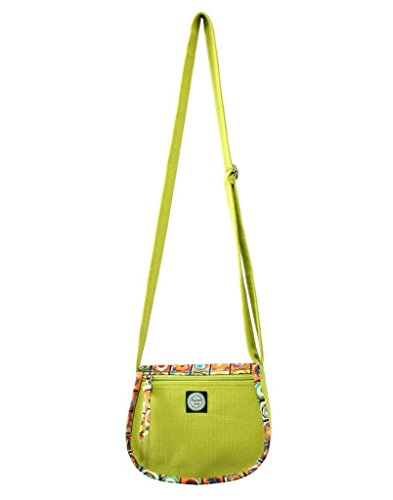 Anekaant Women's Whimsical Corduroy and Printed Canvas Sling Bag - Green