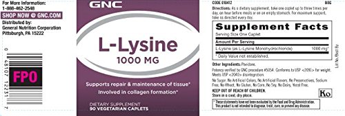 GNC LLysine 1000 MG 90 Vegetarian Caplets