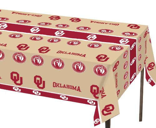 Get up. It's game day. Up and coming collegiate teams battle it out for their spot in the bowl games. Back your favorite divisions and teams with championship-worthy party decor. Tablecloth is constructed from light-medium weight plastic, measures 54-Inch wide x 108-Inch long and is designed to fit standard rectangle shaped banquet tables up to 8 feet in length. Team tablecloth has University of Oklahoma logo print all over the top and edges. Creatively convert your gatherings into the biggest events of the year. Support the Sooners with our NCAA football college collection featuring crimson red and cream paper plates, napkins and cups with matching streamers and table coverings. Just the ticket for hosting an OU tailgating or house party that generates just as much excitement as the game itself. With over 80 years of combined experience in the paper and party goods industry, Creative Converting has successfully transformed game-watching get together, college graduations and sports fan's birthdays in every state into unforgettable memories and commemorations with a complete offering of premium strength disposable paper tableware, coordinating decor and fun accessory items. Creative Converting can more than accommodate all your party and event needs.