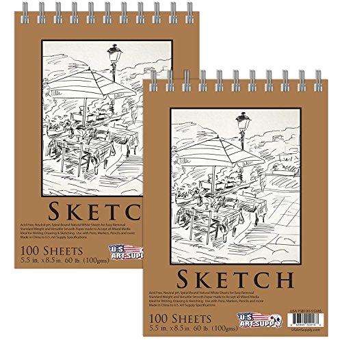 U.S. Art Supply 5.5" x 8.5" Premium Spiral Bound Sketch Pad, Pad of 100-Sheets, 60 Pound (100gsm) (Pack of 2 Pads)
