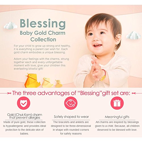 Binding : Jewelry Product Description For your child to grow up strong and healthy, it is everything a parent can wish for. Each gold charm embodies a unique blessing. Adorn your feelings with charms, strung together each and every unforgettable movement with love, give your children this everlasting blissful gift! Three advantages of baby gold charm collection: 1. Gold charm that prevent allergies: Made of pure gold, these collection is hypoallergenic and provides ideal protection to the delicate skin of babies. 2. Safely shaped to wear: The bracelets and anklets are designed to be three-dimensional in shape with rounded corners for safety reasons. 3. Meaningful gifts: All charms are inspired by blessings given to a child. Because, all children deserved to be blessed with love. 0