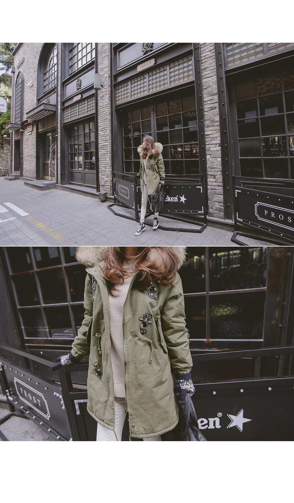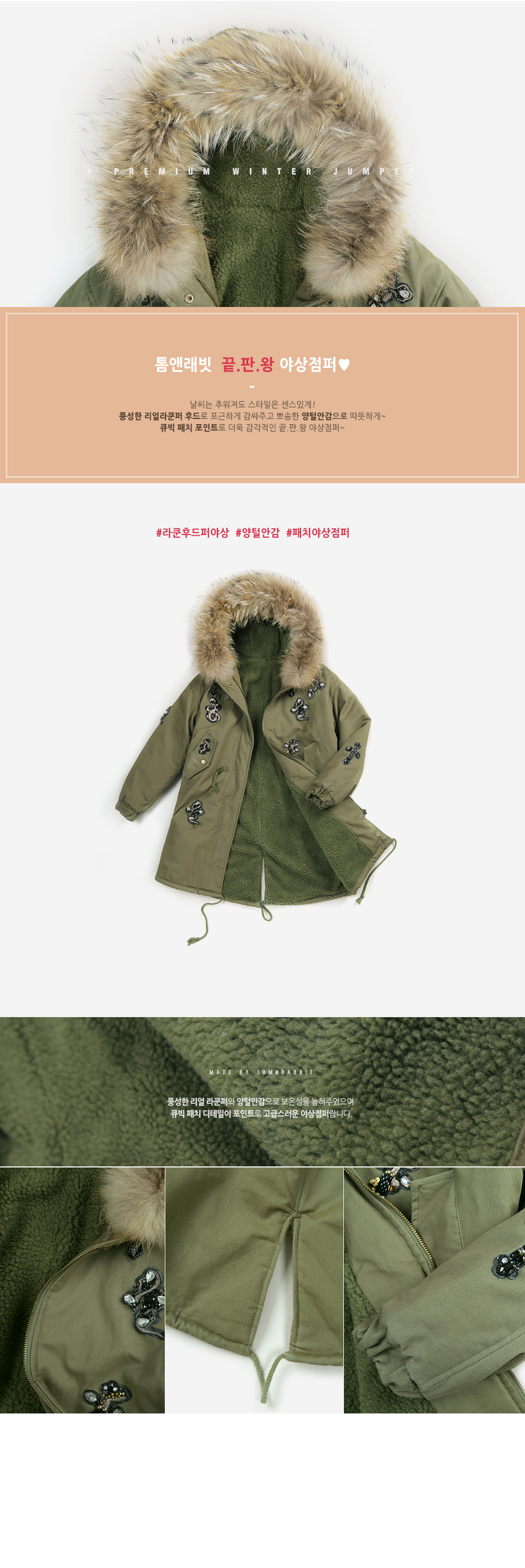 풍성한 리얼 라쿤퍼 디테일의 큐빅 패치 야상을 소개합니다.