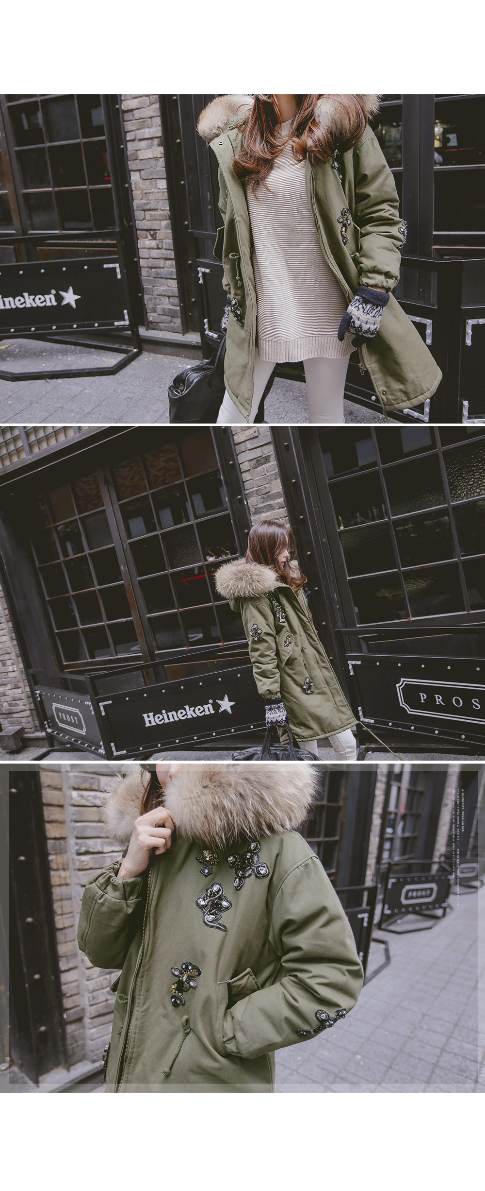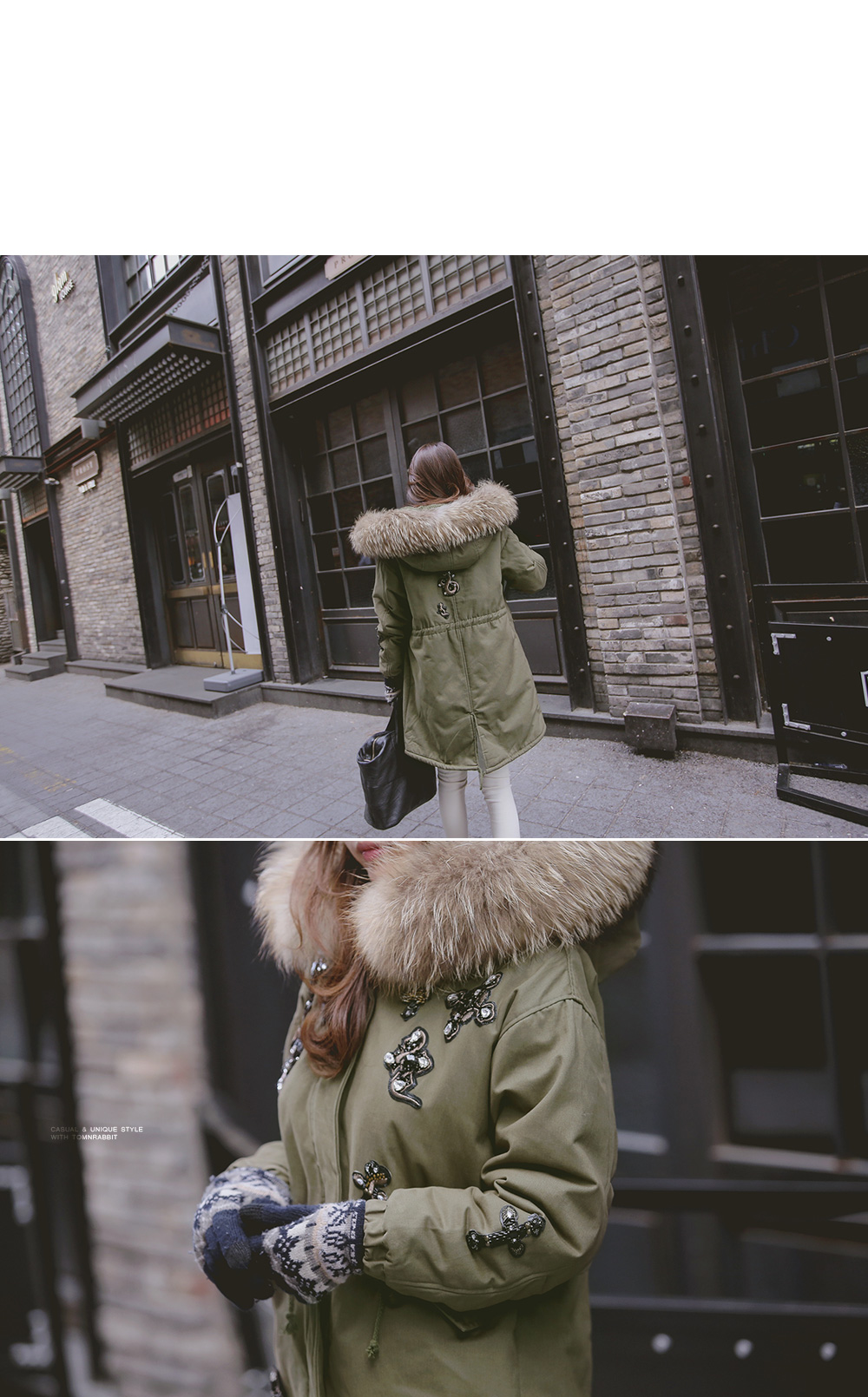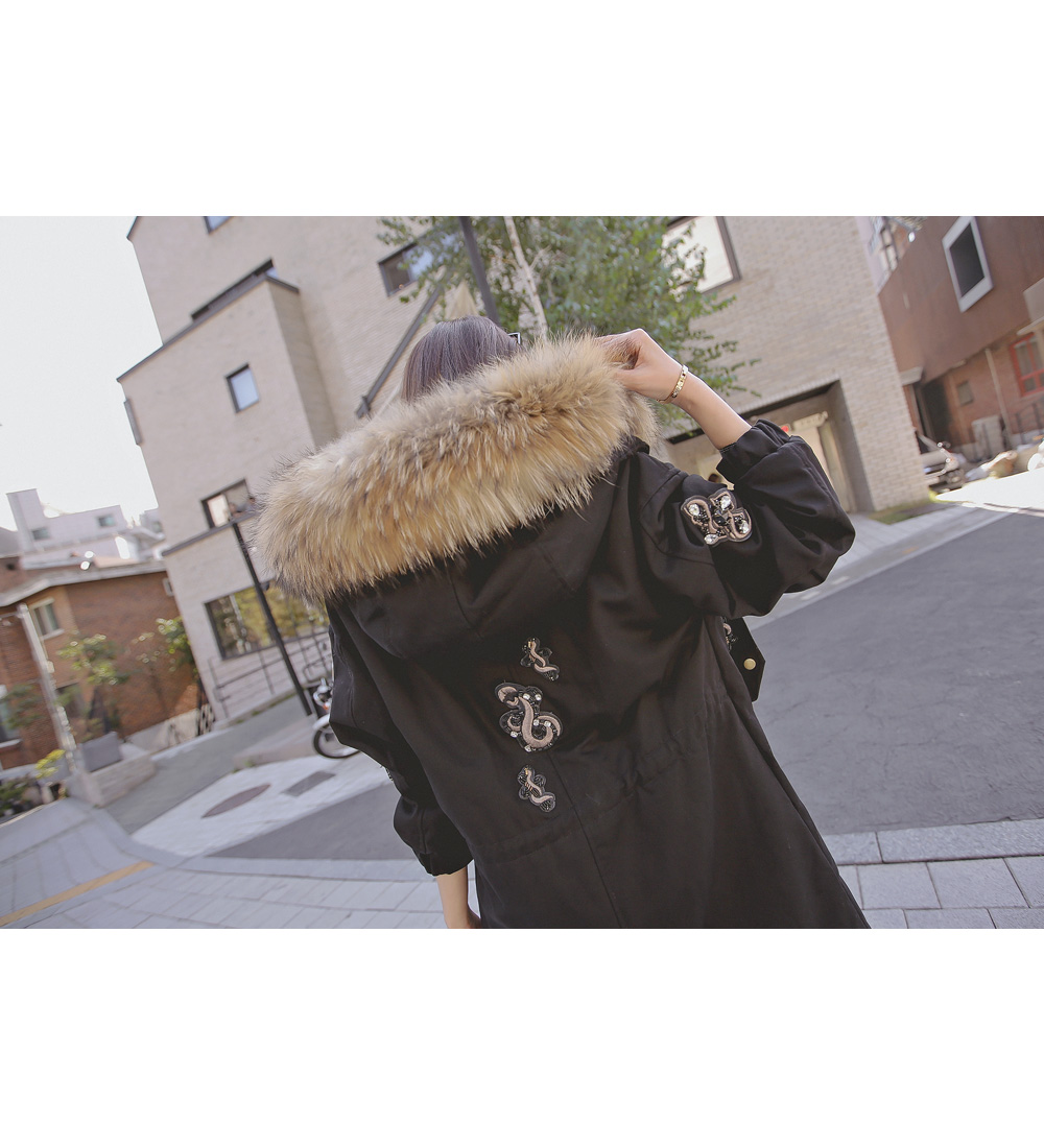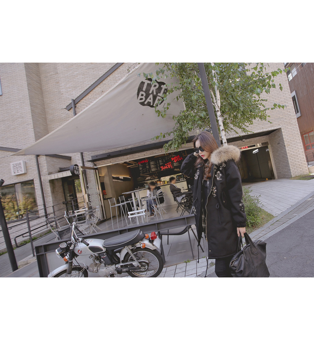 풍성하게 달린 리얼 라쿤퍼 디테일로 보온성을 높였으며