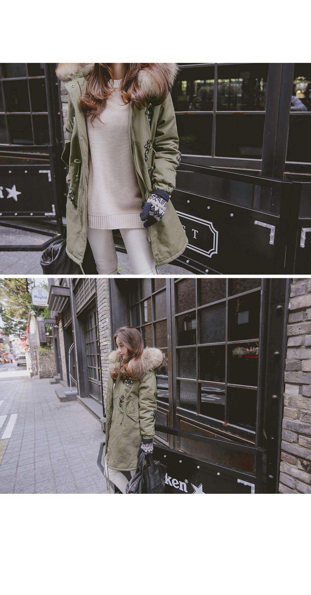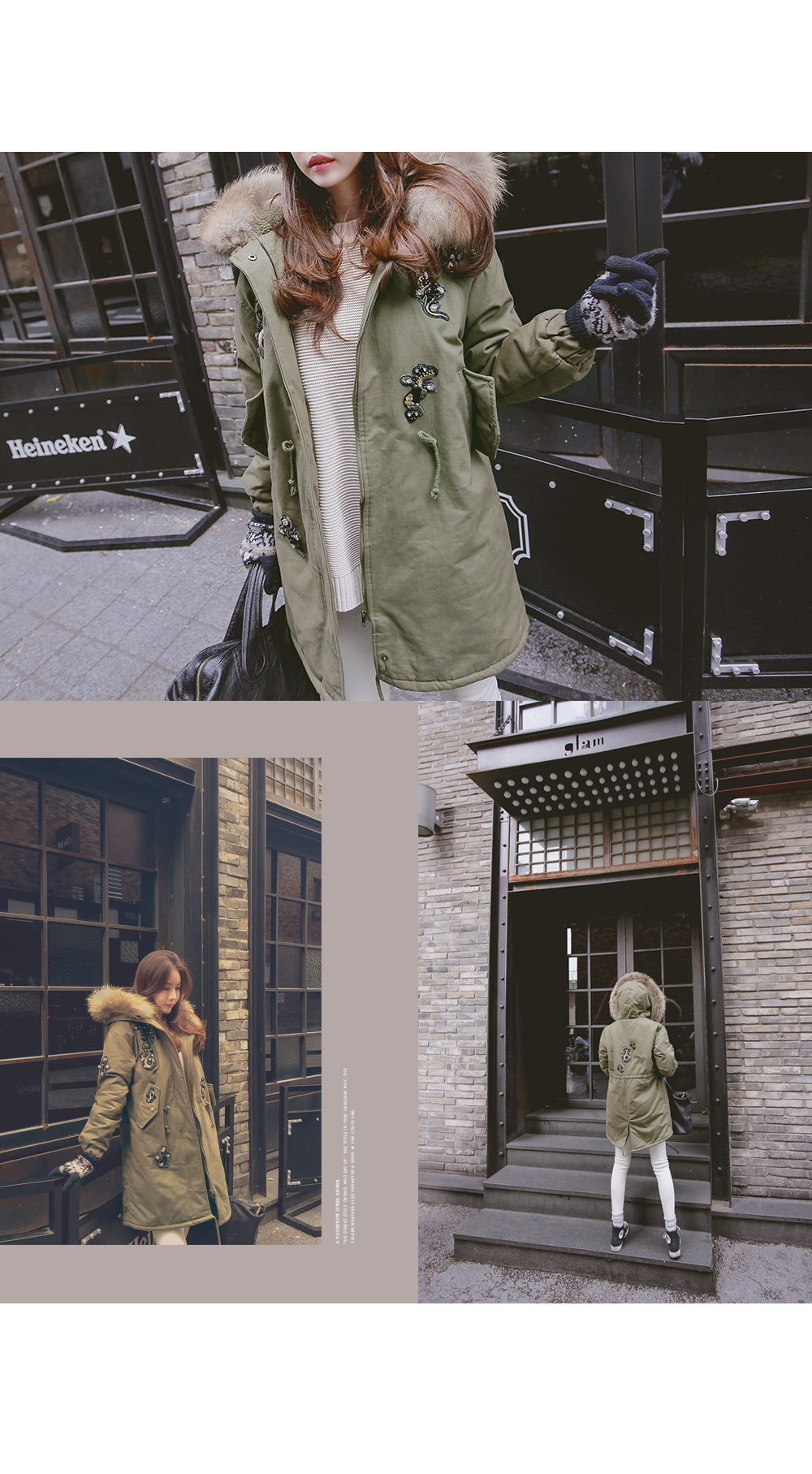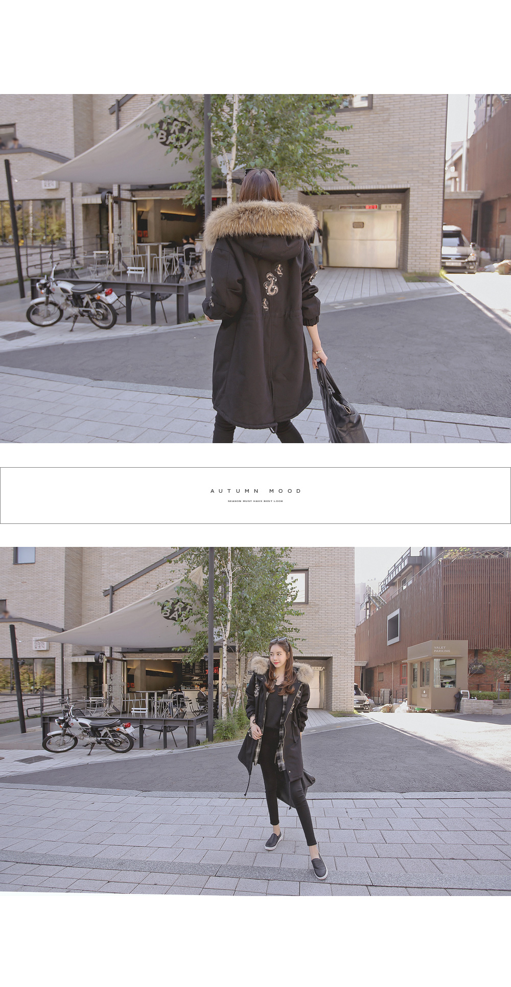 풍성하게 달린 리얼 라쿤퍼 디테일로 보온성을 높였으며