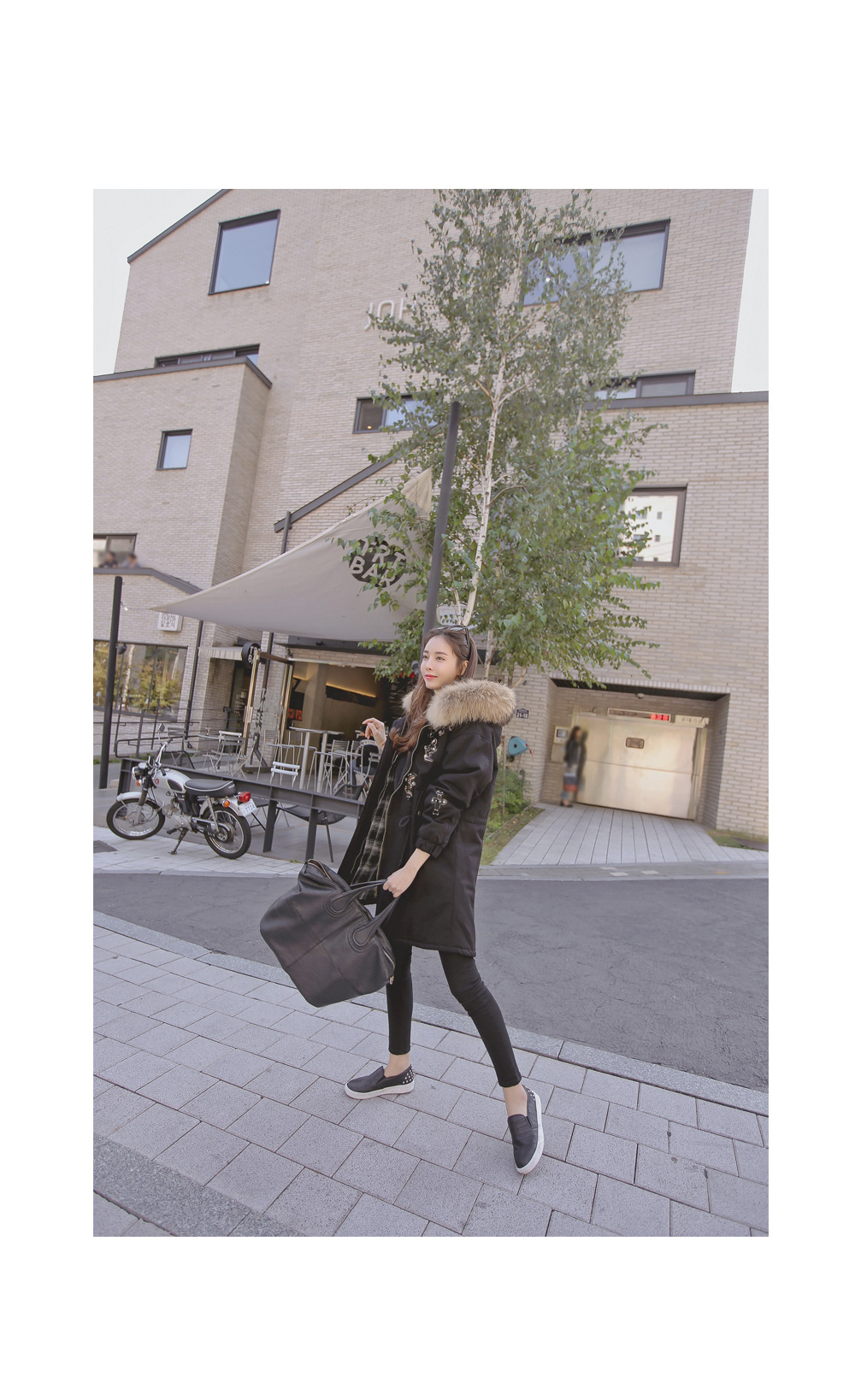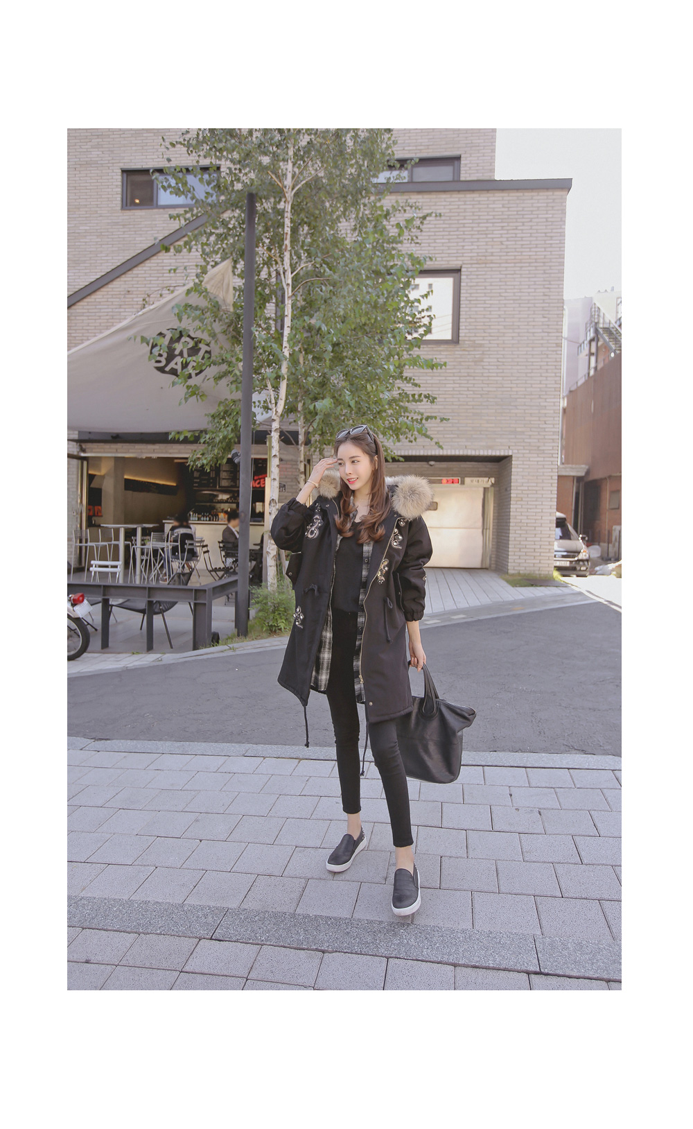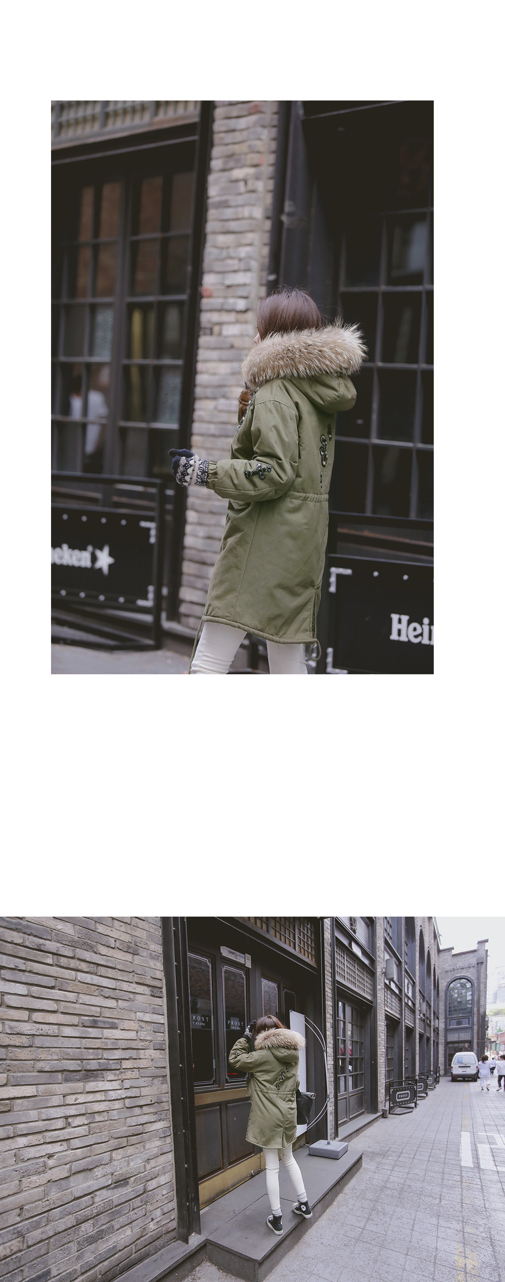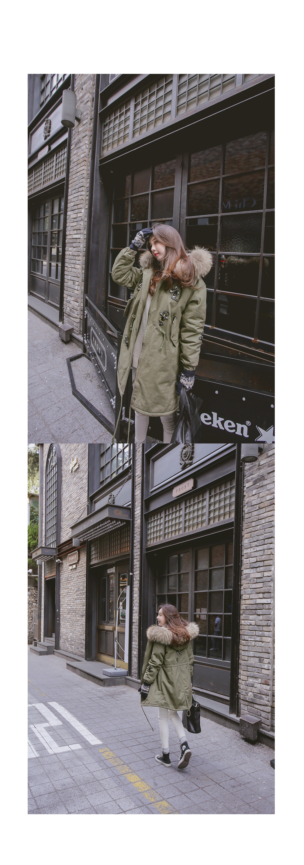풍성하게 달린 리얼 라쿤퍼 디테일로 보온성을 높였으며