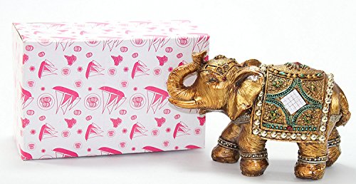 Feng Shui Brass Color 6" Elegant Elephant Trunk Statue Wealth Lucky Figurine + Gold Mini Buddha Home Decor Gift US Seller