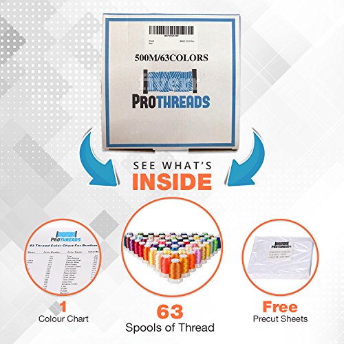 Polyester Embroidery Machine Thread Set, 63 Spools Plus 100 Stabilizer Tear-Away Sheets