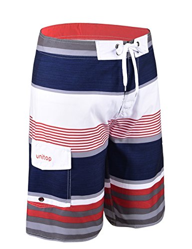 -. Binding : Misc. -. Brand : Unitop -. Department : mens -. Feature : Velcro closure with the darwstring / With the mesh linging, you will feel breathable / Cargo side pockets with the velcro get all your stuff held in it with which you take.the velcro closure will be more convenient. / Functional wear for daily,holidays,beach activites,the various outdoor recreations.Especially the soft microfabric smoothly touches your skin / Hand wash and machine wash -. Model : UT16159-16163 -. ProductGroup : Apparel -. ProductTypeName : SWIMWEAR -. Title : Unitop Men's Quick Dry Classical colorful Striped P.R.Int Swim Trunk Beach Board Shorts
