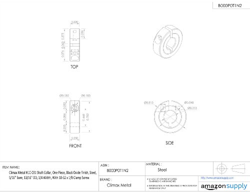 Climax Metal H1C-031 Shaft Collar, One Piece, Black Oxide Finish, Steel, 5/16" Bore, 13/16" OD, 1/4 Width, With 10-32 x 1/8 Clamp Screw
