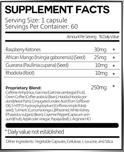 Garcinia Cambogia, Raspberry Ketones, Green Coffee, CLA, and other thermogenic fat burn ingredients.