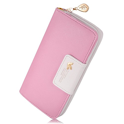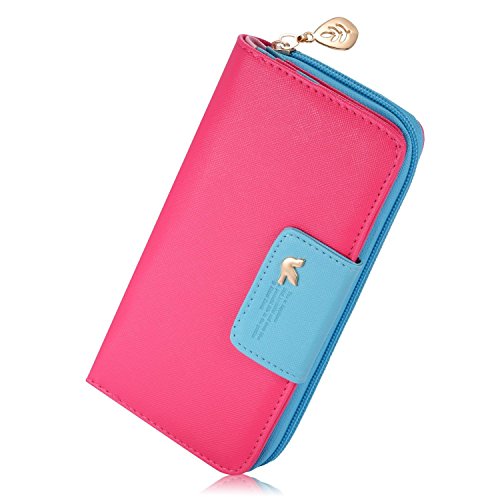 Leiwo Women's Multi-card Position Two Fold Long Zipper Purse Wallet Rosered