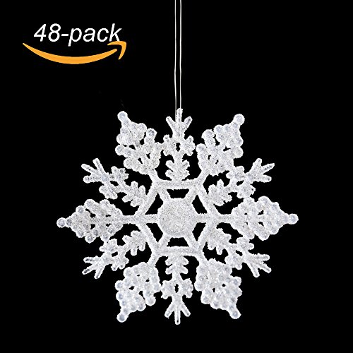 - PACKAGE - Pack includes 48 of the glittered snowflake ornament shown.