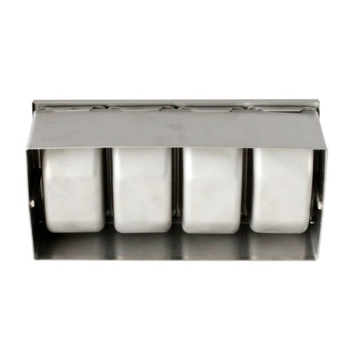 -. Feature : Made out of stainless steel for easy maintenance and durability / Ideal for any bar, restaurant, or home that requires storage of condiments and other small goods / Made to store all types of items in a convenient, collective fashion / Silvery color is meant to add an elegant shine to any décor / Available in different sizes: from three to six compartments, to suit your condiment holding needs