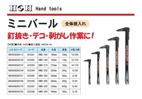 【商品名】(業務用30個セット) H&H ミニバール/梃子 【全長:180mm】 全体焼入れ HMB-180 〔DIY用品/大工道具〕