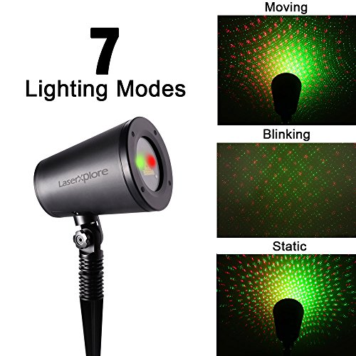 LaserXplore Laser Christmas Lights, Red and Green Star Projector, Moving Star Laser with 7 Lighting Modes for Christmas, Holiday, Parties, Landscape and Garden Decoration