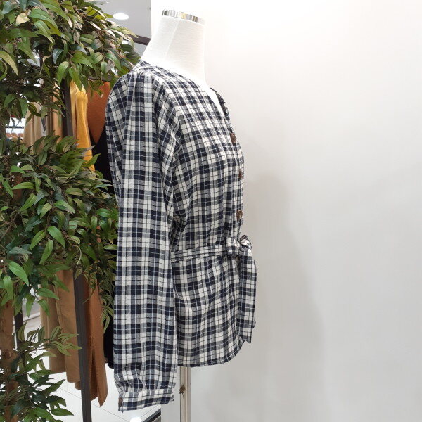 허리끈으로 여성스러움을 강조한 스타일입니다