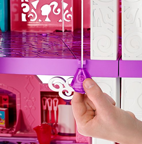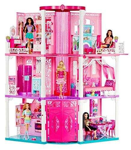 Barbie has saved up for a new Dreamhouse and is moving in! Her new home is FAB and still has three great stories for play! Hit the kitchen on the first floor to create an amazing meal with the luxe "stainless steel" appliances, blender (complete with sounds) and light-up oven. Girls can flip the table in the dining room to go from breakfast to dinner with no fuss. On the second floor, Barbie doll and her guests (not included) can use the spacious bathroom that features all sorts of realistic touches when kid-activated, such as a light-up mirror, "flushing" toilet and singing in the shower. Head to the bedroom for a place to rest Barbie doll's head. The divine canopy bed pulls out to reveal a trundle bed, perfect for sleepovers. And a puppy bed means Barbie doll's pet can sleep comfortably cuddled as well. Take the elevator to the third floor for more FAB fun! The living room has a television that "flips" channels, and a great balcony provides the perfect spot to soak up the Malibu sun. Or visit Barbie doll's ultimate closet to get ready for a night out. Barbie doll can pick out the perfect outfit and send it down to the bathroom in her second fashion elevator. It's every girl's dream - house! Dolls and fashions not included. Ages 3 and older.Feature