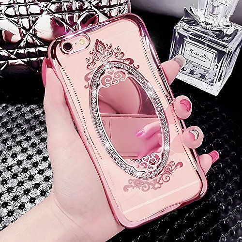 -. Title : iPhone Crystal TPU Glass Case-Superstart Super Slim Shiny Electoplating Mirror Case With Bling Diamond Frame for iPhone with Rhinestone and Crown for Girls
