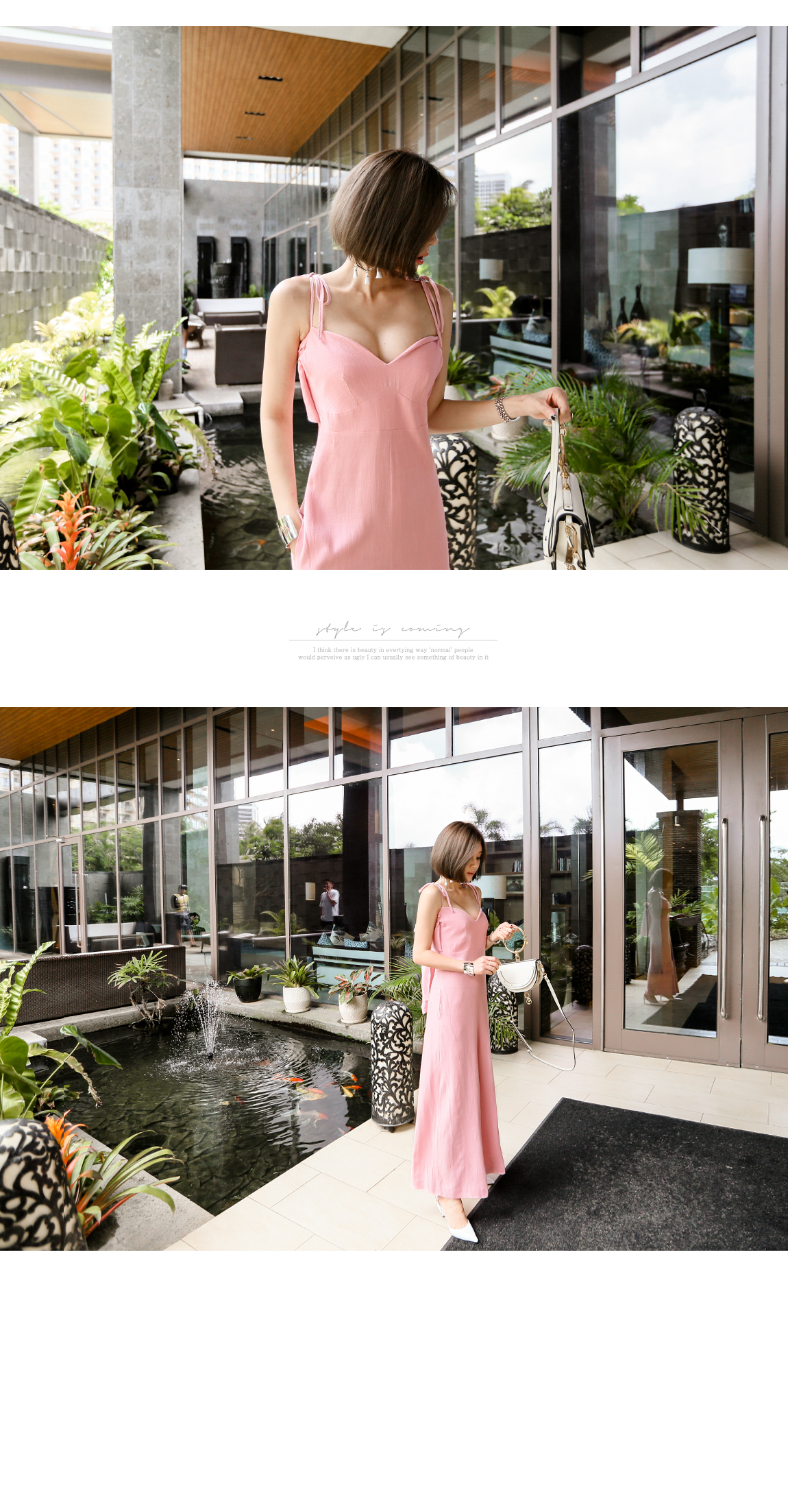 어깨는 리본으로 제작되어 라인에 맞게 조절할 수 있어요