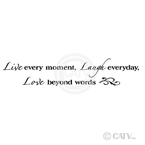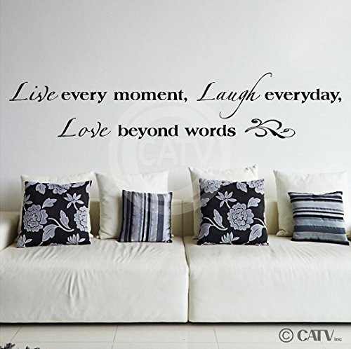 Live Every Moment, Laugh Everyday, Love Beyond Words Vinyl Lettering Wall Decal Sticker (8"H x 40"L, Black)