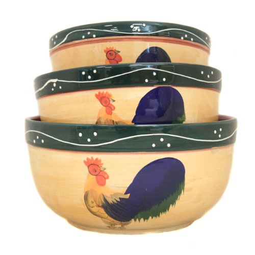-. Title : Classic Rooster Collection Deluxe Hand-Painted Serving Bowls (Set of 3)
