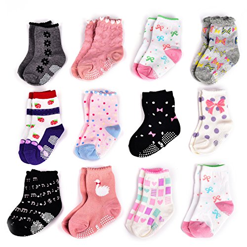 -. Title : 12 Pairs Toddler Girl Non Skid Socks Cute Cotton with Grips, Baby Girls Anti-skid Socks