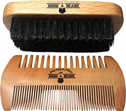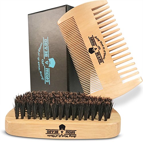 Beard Brush and Comb Set for Men - Friendly Gift Box And Cotton Bag - Best Bamboo Beard Kit for Home and Travel - Great for Dry or Wet Beards - Adds...