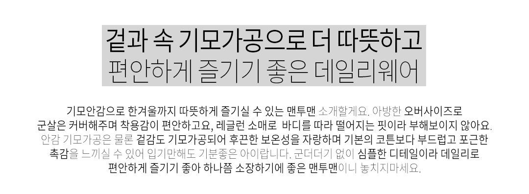 .같은 사이즈라도 체형에 따라 핏감이 조금씩 다를 수 있습니다.