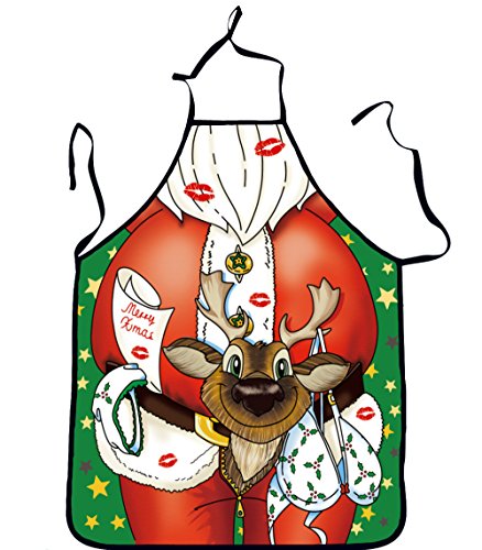 - Cute Santa Claus and rein deer pattrens on the apron, and it is perfect for novelty party and Christmas party.