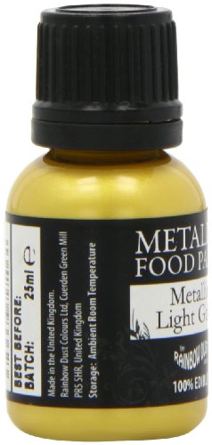 Studio : GroceryCentre Publisher : GroceryCentre Binding : Grocery Product Description These ready-to-use maetallic paints can be used to paint on sugarpaste, flowerpaste, modelling paste, cookies, biscuits, pastries and royal icing. They can also be used through an airbrush (best results 0.35 nozzle) to cover buttercream to give a metallic sheen to your cupcakes. The paint takes approx 15 - 30 mins to dry and results in a clean, sealed, sparkling glitter effect. 0
